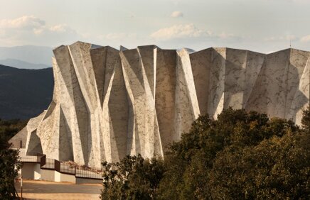 Le bâtiment abritant la réplique de la grotte Chauvet,
